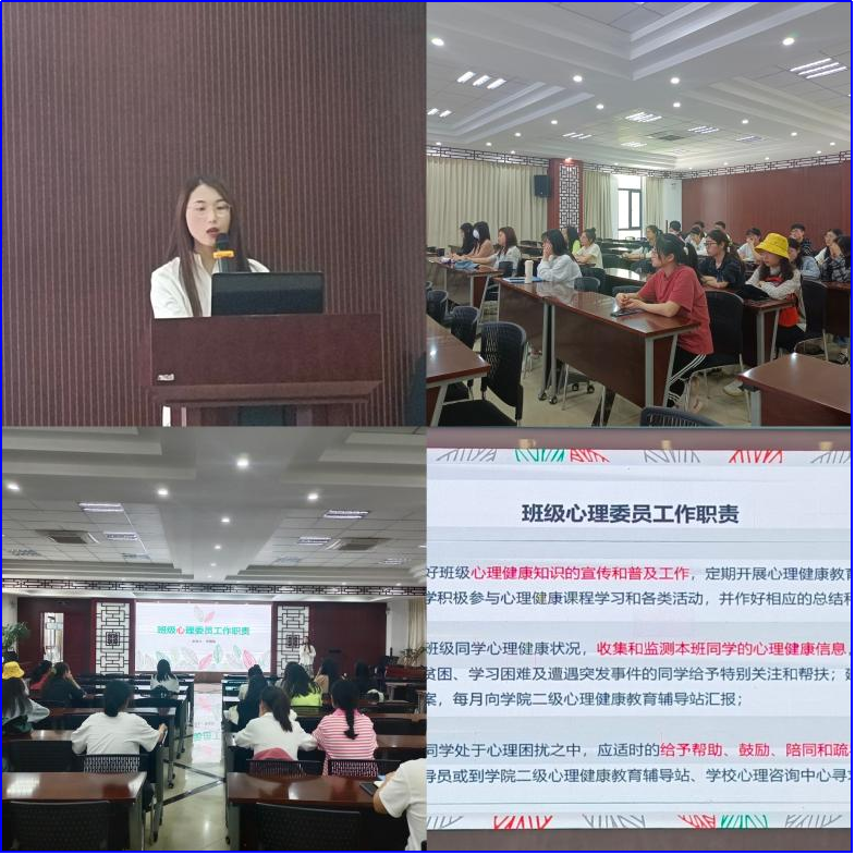 李相南强调各班级的心理委员是学院开展心理健康工作过程中不可或缺的一部分,是学生和辅导员之间的沟通桥梁。她带领各班级心理委员学习《安徽中医药大学班级心理委员工作职责》文件中有关内容,引导心理委员们了解工作内容,明确工作职责。她还为大家提供心理知识学习渠道,鼓励各班级心理委员通过自我成长去帮助更多身边人。最后,李相南介绍了三种简单的心理问题识别方法和六条线索,希望心理委员能够拥有一双善于发现存在心理问题学生的眼睛,配合学院工作,积极主动向辅导员反馈信息,防止心理危机事件发生。