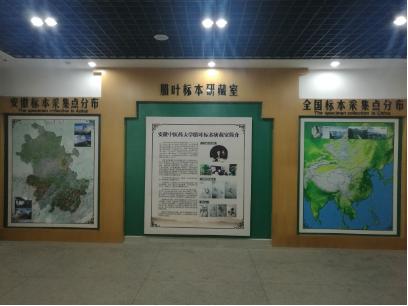 六、腊叶标本研藏室 展出的为我校师生从全国各地采集而来的腊叶标本约20万份,其数量居于全国医药院校之首,标本室代号“ACM”1992年被国际植物分类学会注册认可。