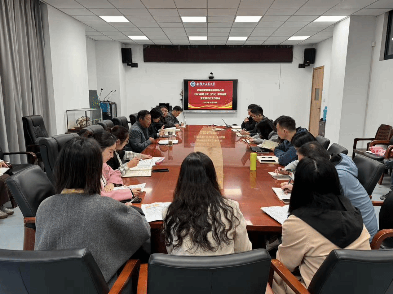 10月30日上午,药学院党委召开理论学习中心组(扩大)2025年第十次学习会暨党支部书记工作例会。会议由党委书记胡卿主持,学院党委委员、各支部书记参会。