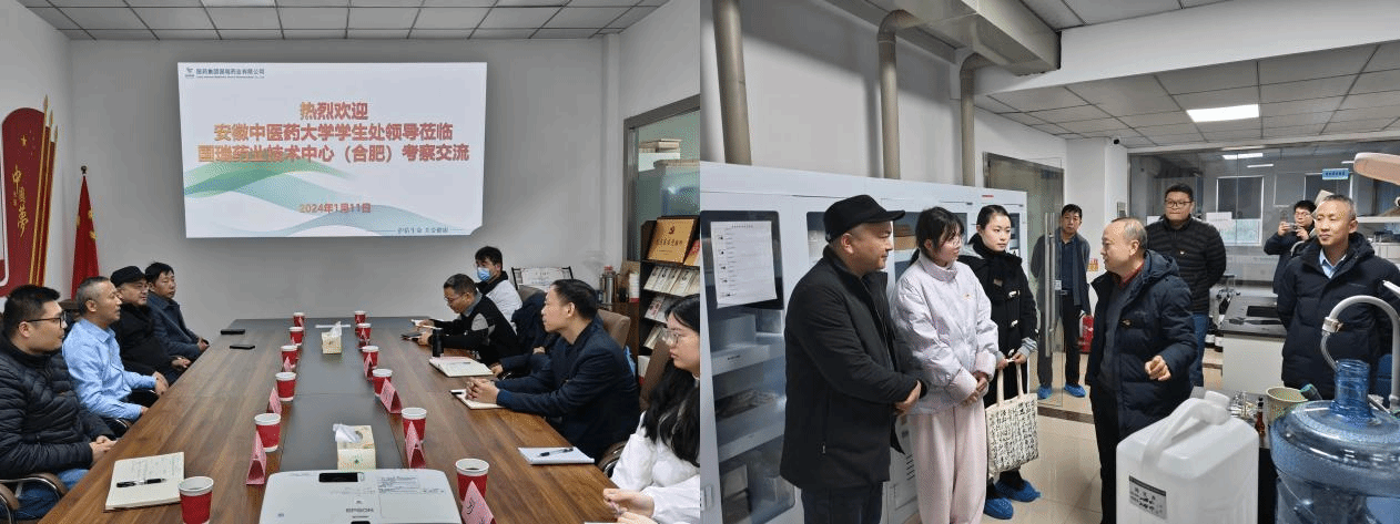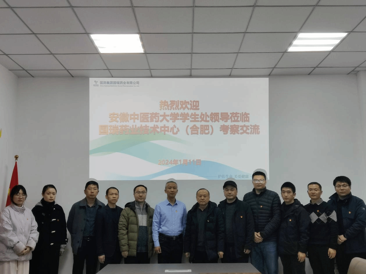 为切实加强党组织的交流与共建合作,1月11日,机关党委学生处党支部与药学院学生第十党支部赴国药集团国瑞药业有限公司技术中心(合肥)开展结对共建活动。学生处处长、学生处党支部书记冯祥,药学院党委副书记徐先韬,学生处征兵科科长刘睿、资助科科长周磊,药学院学工办主任、学生第十党支部书记方文韬及学生党员代表参加活动。