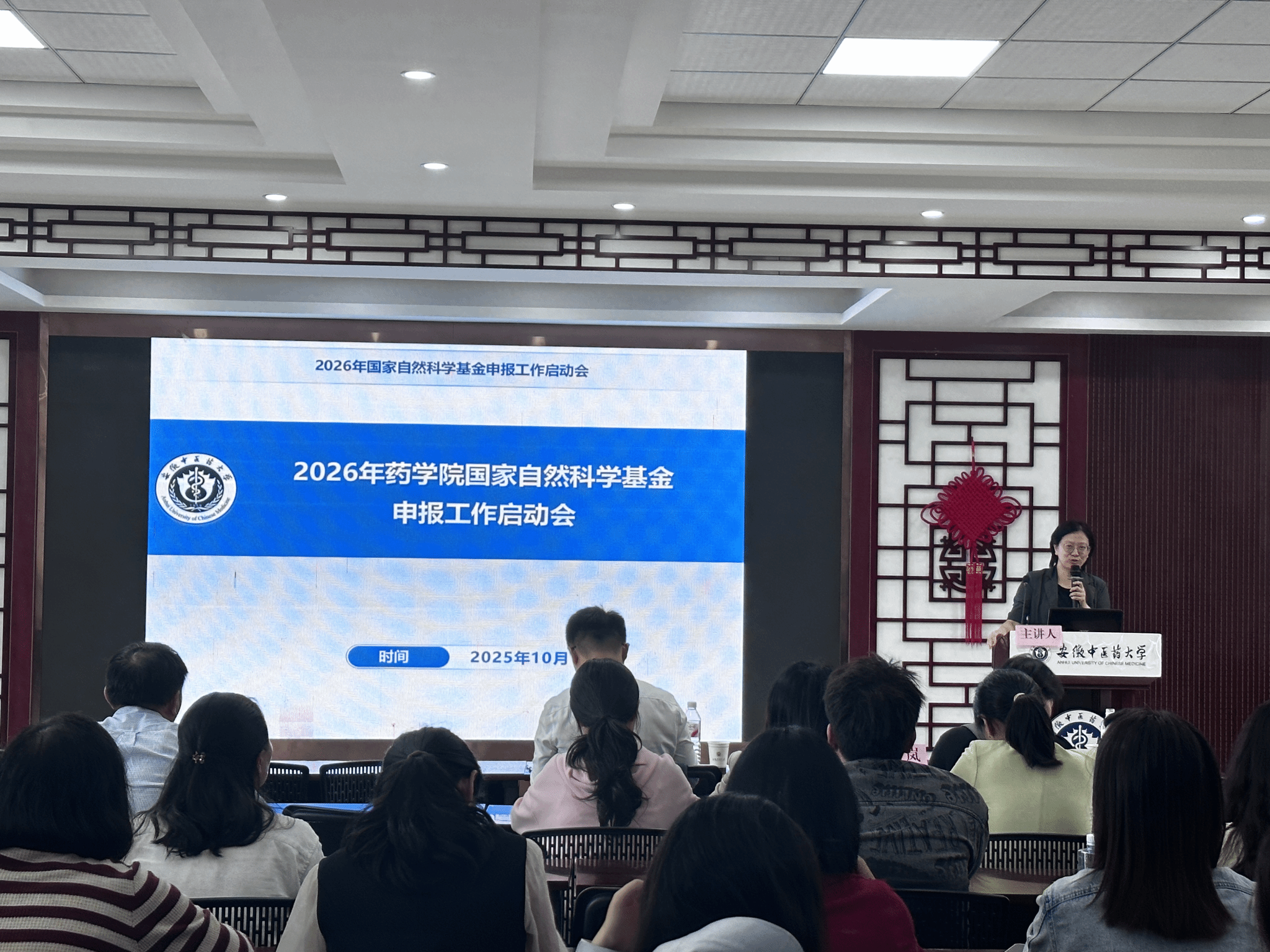为进一步提升学院国家自然科学基金项目申报质量,系统部署2026年度申报工作,安徽中医药大学药学院于2025年10月17日下午在少荃湖校区380会议室成功召开了2026年国家自然科学基金申报工作辅导及启动会。会议由药学院执行院长韩岚主持,学院申报教师及研究生代表参加了本次会议。