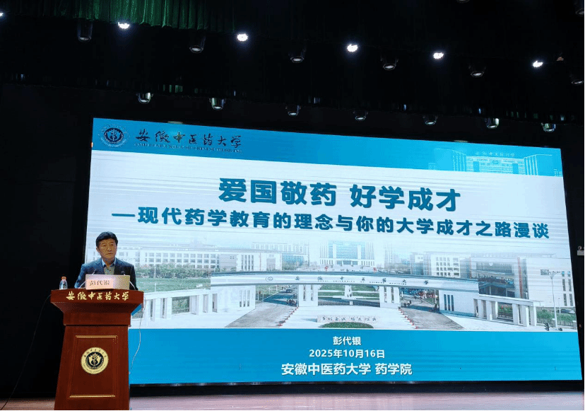 彭代银教授以《爱国敬药 好学成才——现代药学教育的理念与你的大学成才之路漫谈》为题,作新生入学教育讲座,重点围绕“立德树人,精业济群——现代药学教育的理念”与“知行合一,全面发展——你的大学成才之路规划”两个部分进行讲授。他指出,大学是知识、能力、思维、人格的全面升华期,同学们应该对标“当代优秀药学类专业大学生的五大核心标准:品德素养、知识结构、核心能力、视野协作、身心强度”去努力奋斗,勉励同学们心怀本草济世志,不负韶华启新程。