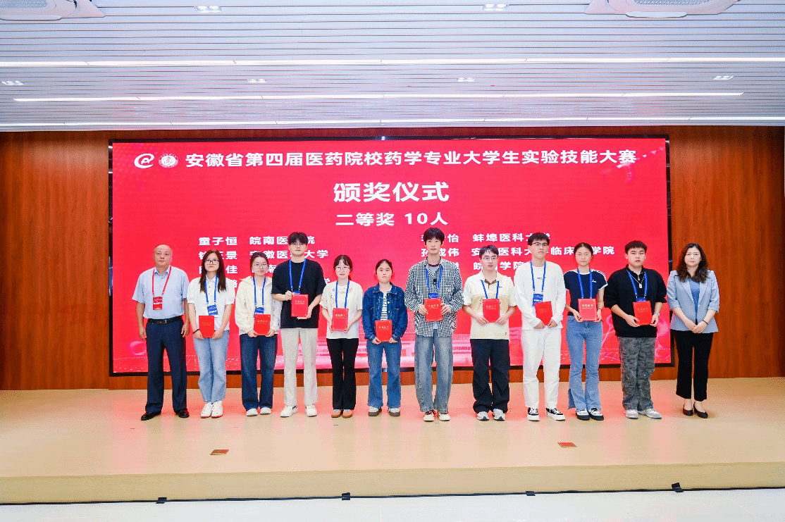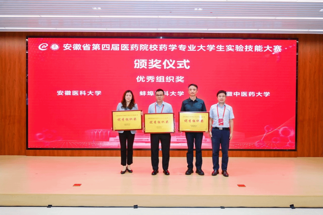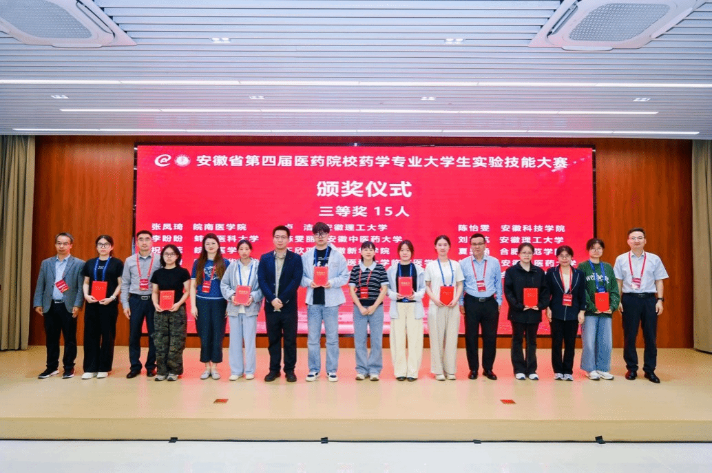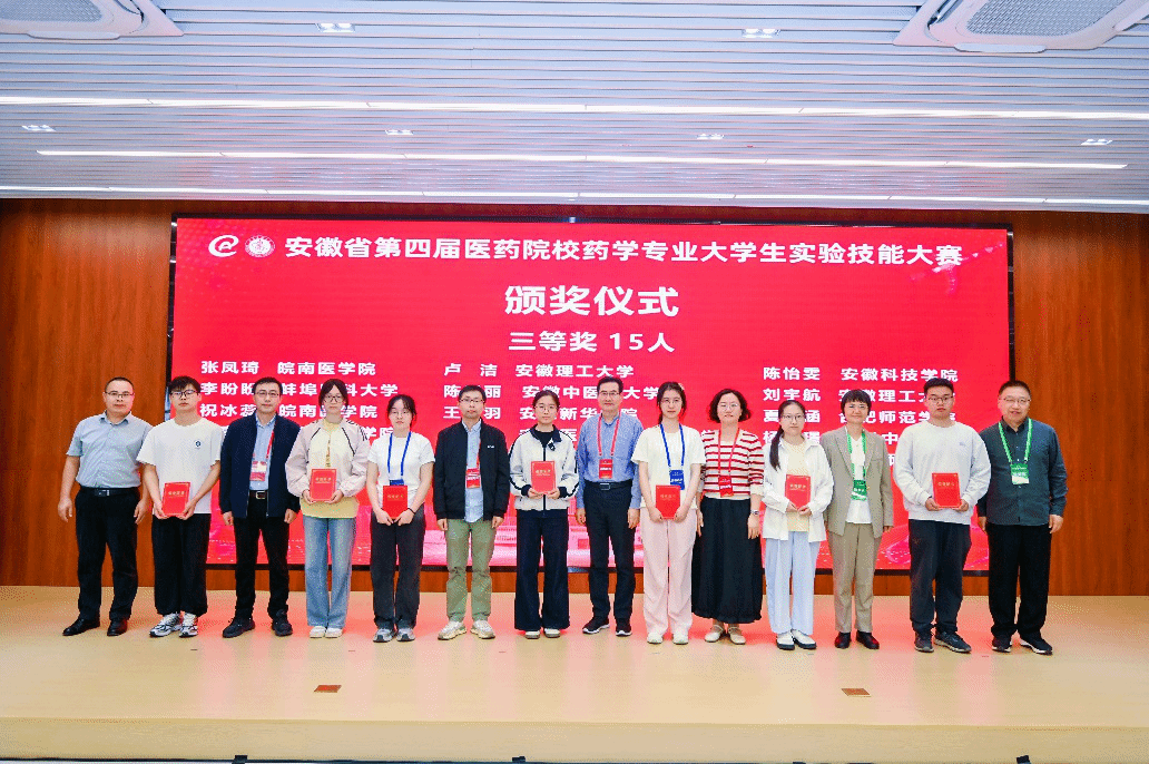 10月11日,由安徽省教育厅主办、安徽医科大学承办的安徽省第四届医药院校药学专业实验技能大赛圆满落幕,来自全省14所高校50名参赛选手参加本次大赛。我校选派的4名优秀学生在比赛中发挥出色,取得优异成绩,2022级药学专业傅心怡获一等奖,2022级中药学专业程国良荣获二等奖,2022级中药学专业陈雯丽、杨鑫璟荣获三等奖,学校获优秀组织奖。