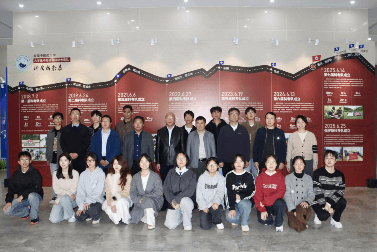 2025年11月10日下午,安徽中医药大学第七届大学生中药资源科学考察队暨俄罗斯中药资源科学考察队科考成果展启动仪式,在该校图书馆G层大厅隆重举行。学校党委副书记周新发、安徽亚泰药业有限公司董事长王进、安徽广播电视台记者代表,以及学校相关职能部门、药学院负责人、科考队指导老师与全体队员、部分学生代表齐聚现场,共同见证这一实践育人成果的集中呈现。