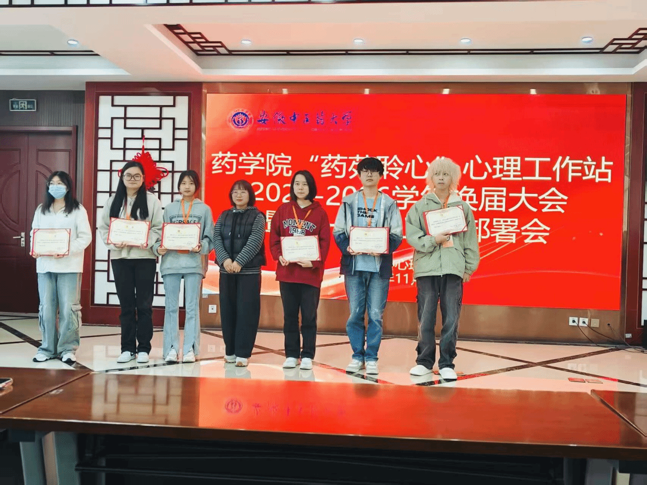 11月12日中午药学院“药苑聆心”心理辅导站2025-2026学年换届大会暨工作部署会在沁馨堂召开。心理辅导站负责人顾忆涵老师及辅导站全体成员参会。