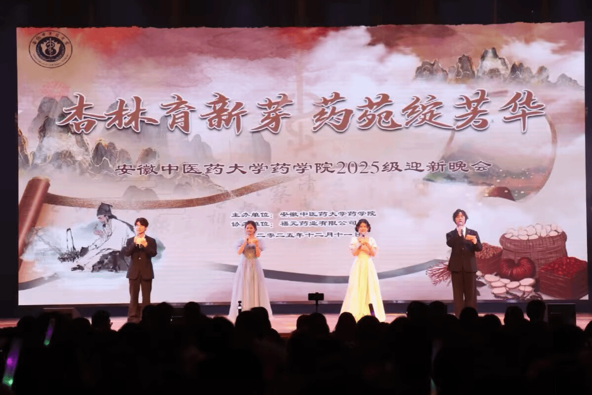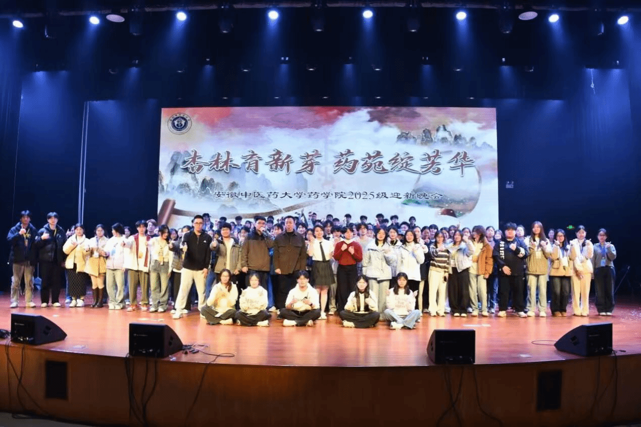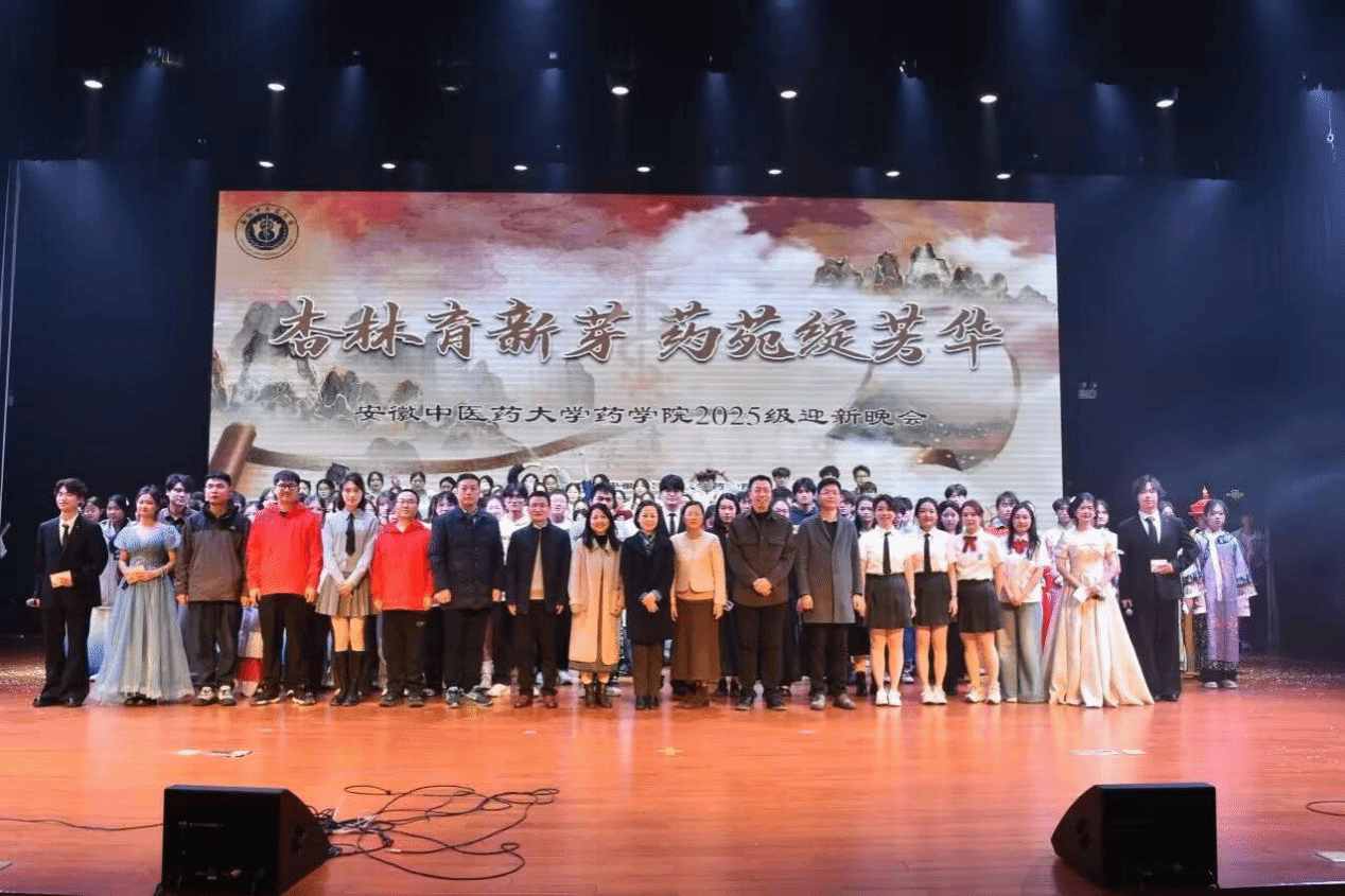 12月11日晚,安徽中医药大学药学院2025级“杏林育新芽,药苑绽芳华”迎新晚会在少荃湖校区大学生活动中心举办。