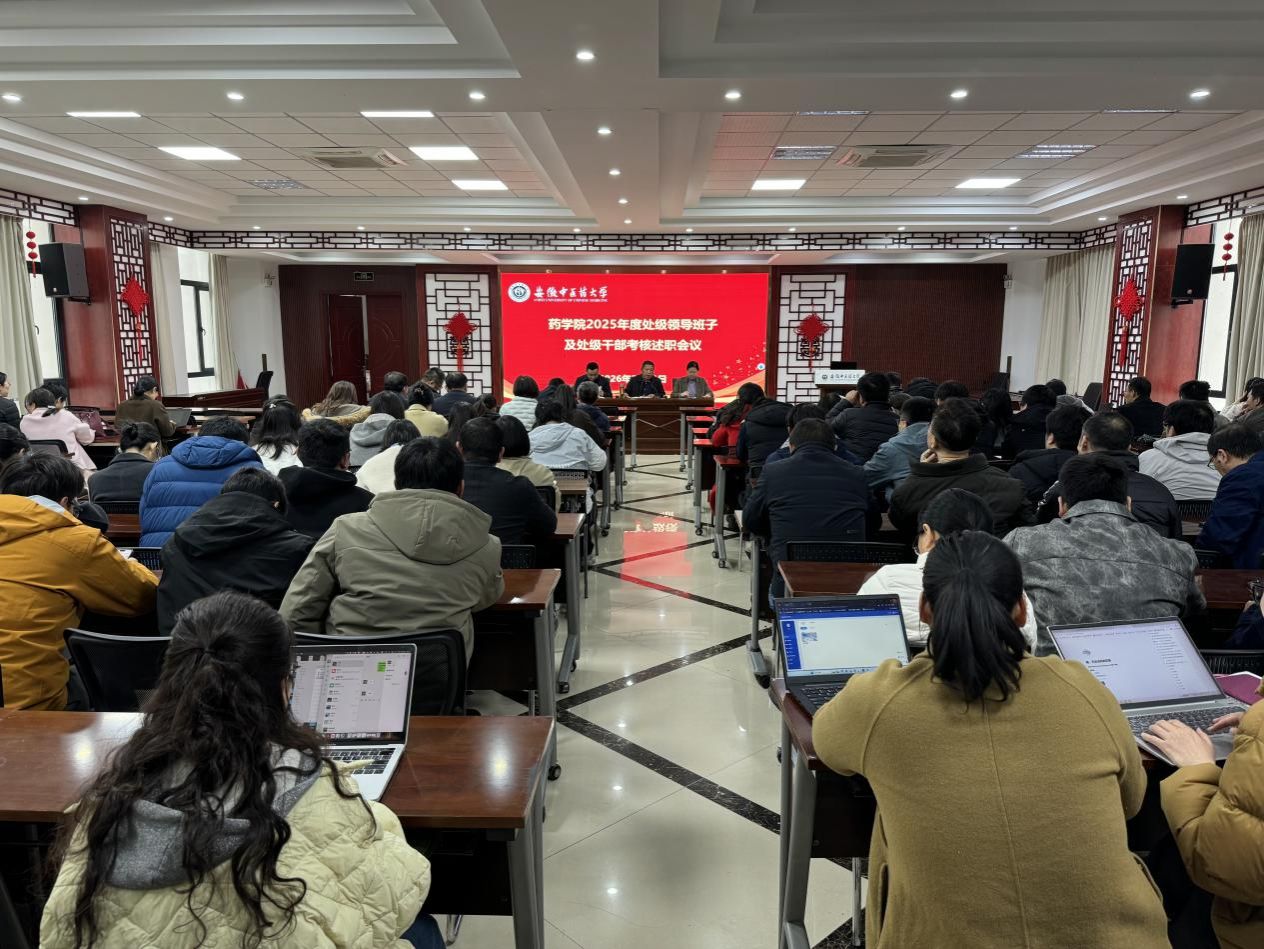 3月11日下午,药学院召开教职工大会暨2025年处级领导班子和处级干部考核述职评议大会。学院党政领导班子、全体教职工参加,会议由学院党委书记胡卿主持。