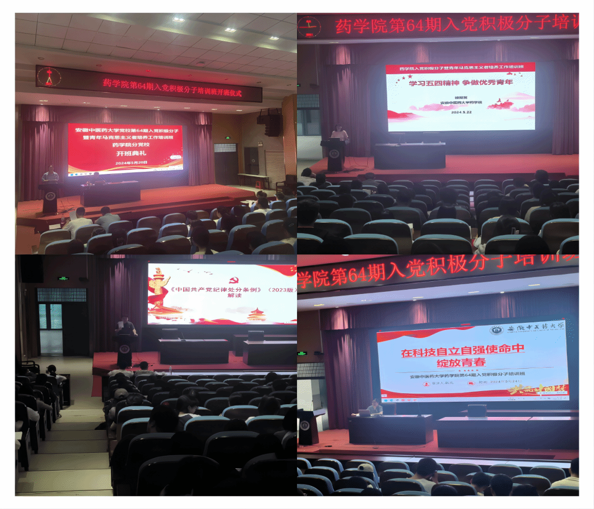5月20日至5月25日,药学院分党校第64期入党积极分子暨青年马克思主义者培训班顺利开班,本次集中培训安排了主题教育、榜样示范专题学习和研讨交流活动,221名入党积极分子参与学习。