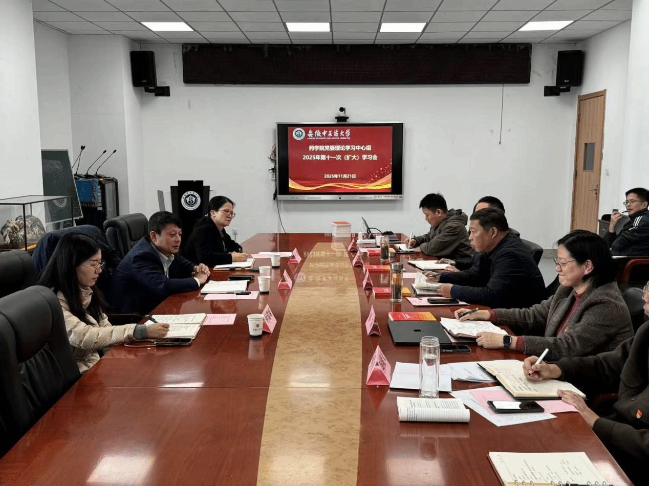 11月21日上午,学校党委副书记、校长许钒、发展改革处处长卢蓉一行列席旁听药学院党委理论学习中心组2025年第十一次(扩大)学习会。药学院班子成员、党委委员和各党支部书记参会,会议由学院党委书记胡卿主持。