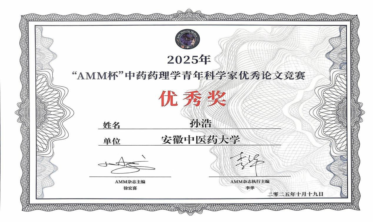 在“优秀青年科学家成果分享”环节,我校2023级硕士研究生孙浩同学以《羟基红花黄色素A调控NG2胶质细胞抑制Drp1对脑缺血再灌注损伤小鼠的机制研究》为题,从申请口头交流的选手中通过选拔,参加了最后的青年科学家成果分享会并荣获优秀奖,充分展现了我校研究生扎实的科研素养与创新能力。