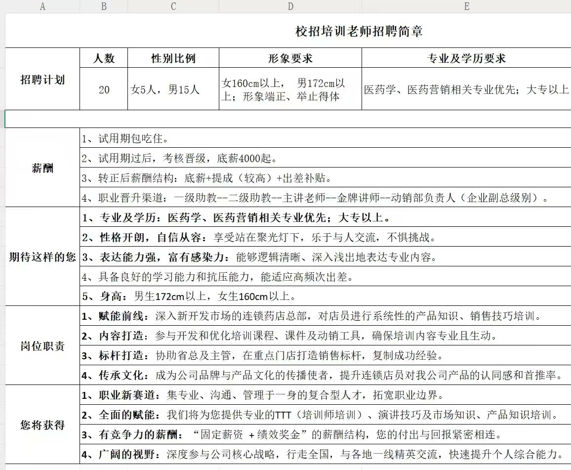 广东松下药业股份有限公司。岗位;讲师岗位;专业要求;药学,中药学。待遇;来校面对面交流,今天下午1:30在药学院301教室见面沟通。底薪加奖金加提成非常好。欢迎同学们带着简历参加面试。联系人彭部长;13548925888。